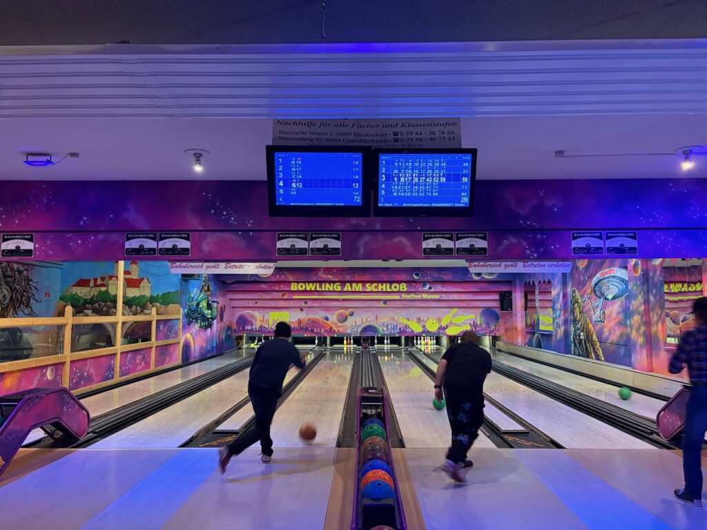 Um auf die Weihnachtszeit einzustimmen, gestalteten die Mitarbeiter des Intensiv Betreuten Wohnens in Stecklenberg für ihre Bewohner eine Weihnachtswoche mit allerlei Abwechslung. Zum Auftakt stand der Besuch des Wernigeröder Weihnachtsmarkts auf dem Programm. Am Dienstag wurden Kindheitserinnerungen geweckt und gemeinsam Märchen geschaut und Plätzchen gebacken. Am nächsten Tag fand ein Spieleturnier statt, wodurch auch viel Raum für Gespräche entstand. Eine anschließende Tombola mit schönen Gewinnen rundete den Tag ab. Am Donnerstag trafen sich alle Einrichtungen des Harzverbundes zu einer Partie Bowling in Quedlinburg und besuchten anschließend noch den Quedlinburger Weihnachtsmarkt. Zum Ende der Woche wurde ein Festessen mit Rehrücken serviert und anschließend spielten die Mitarbeiter den Weihnachtswichtel und beschenkten die Bewohner mit Kleinigkeiten.